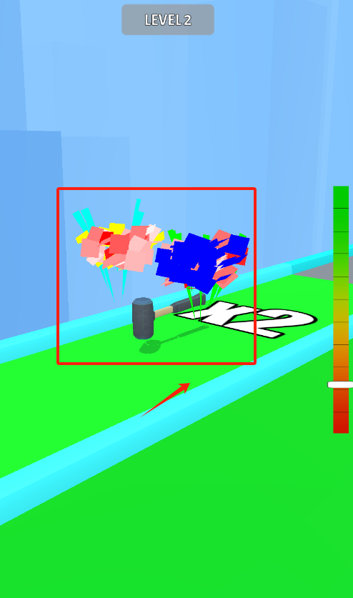 3、到第二关,用锤子敲碎彩色方块,注意看右侧能量条,攒满就能放大招啦。