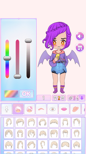 1、进入装扮界面自由搭配发型、服饰等元素,支持细节微调与色彩自定义,打造个性化娃娃形象。