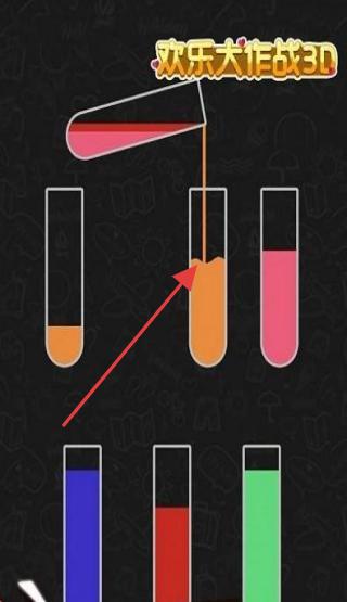 1、面对3种颜色混合的水杯,首次尝试将蓝色水倒入空杯开始排序挑战。