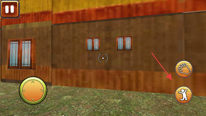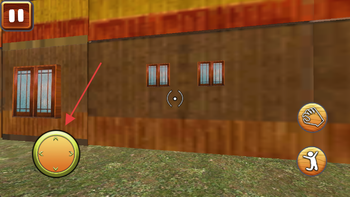 2、通过左下角圆形方向按钮,操控角色在场景中移动,探索房屋周边,寻找逃生路径或关键道具。