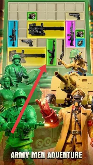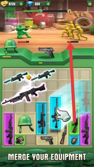 3、利用合成功能持续升级武器、头盔等装备,不断提升士兵战斗力,完成各种“ARMY-MEN-ADVENTURE”任务。