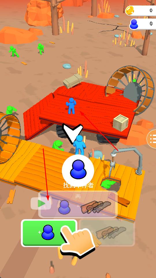 2、探索场景(荒野、建筑),完成“找到幸存者”任务,点击绿色按钮救援同伴,壮大队伍。