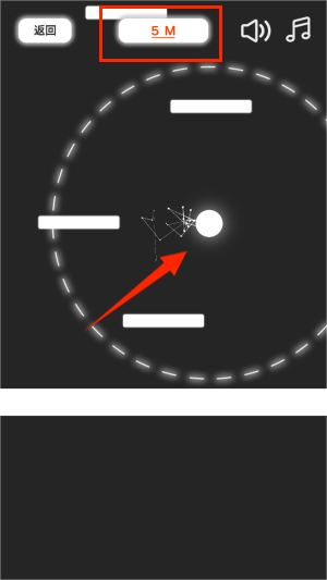 3、正式挑战中通过触控控制圆球弹跳高度,界面顶部实时更新当前跳跃的累计数值。