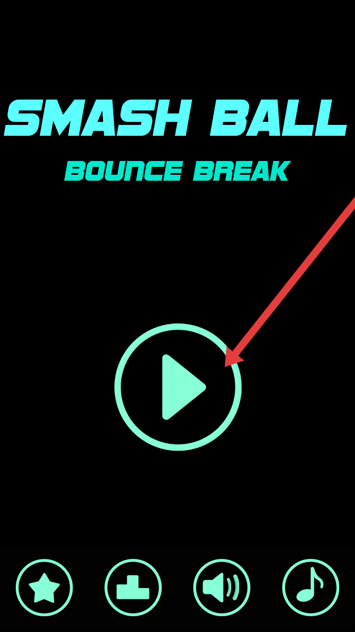1、进入大力射球球的主界面,点击中间荧光绿的播放按钮,触发游戏加载,开启弹球弹跳破坏的关卡挑战。