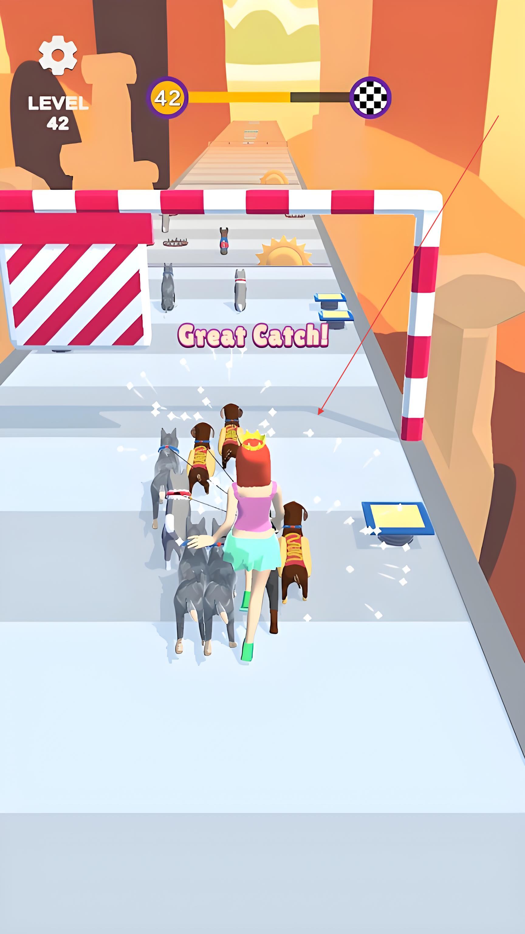 2、动态环境交互机制:赛道包含8种环境机关,如城市赛道的自动门需狗狗触碰按钮开启,森林赛道的藤蔓可借力荡跃,沙漠赛道的仙人掌陷阱会减速,积水坑会让狗狗打滑。