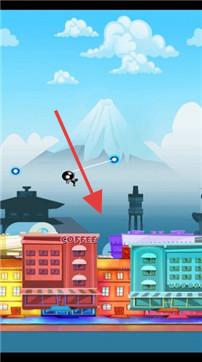 2、跳跃过程中,留意空中蓝色圆环(可借助道具),调整忍者轨迹,跨越城市建筑间的空隙。
