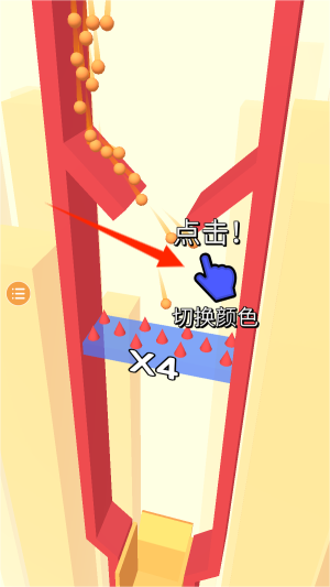 2、球体下落过程中会遇到各种增益道具,同时需要点击屏幕切换球体颜色以匹配障碍。