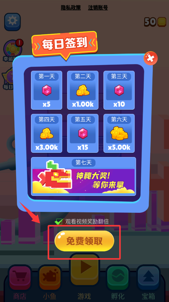 1、登录游戏后领取明天签到奖励。