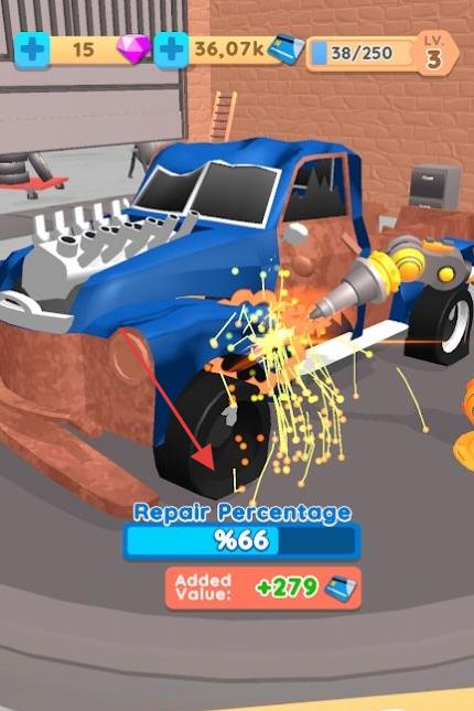 2、可视化的成长反馈:视觉上的成长感强烈——车辆从普通小车到豪华轿车的外观蜕变(颜色更亮眼、造型更精致),车库从狭窄单车位到宽敞多层展厅的规模拓展。