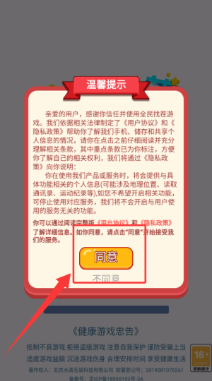 1、首次启动需阅读并勾选用户协议,确认后自动跳转至游戏主界面。