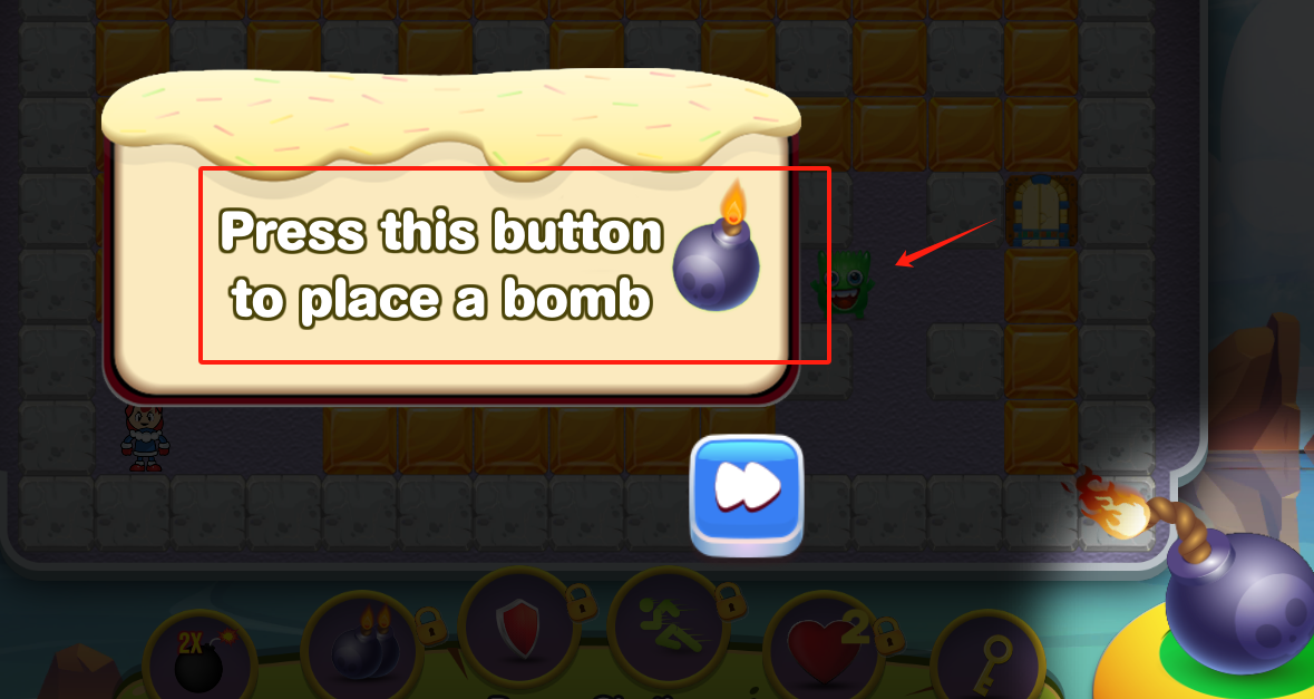 2、看到炸弹图标旁的Press this button提示,直接点这个按钮,就能在游戏里放置炸弹炸怪物啦。