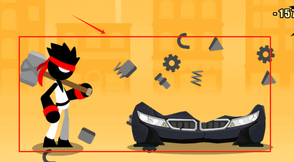 2、看到车头被砸变形飞零件,直接看右上角分数-157,等新关卡提示再点屏幕继续砸车。