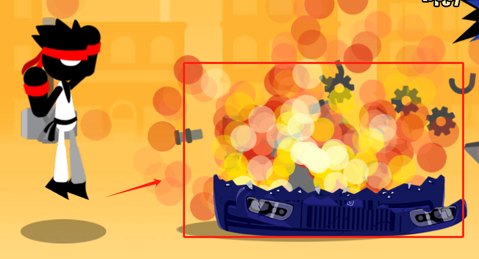3、看到忍者小人看向爆炸光影,点屏幕右侧爆炸位置,就能让忍者扔箱子触发绚丽爆炸啦。