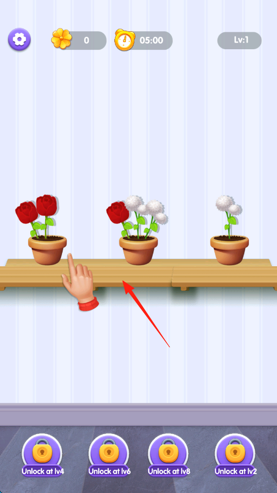 1、分类消除操作:专注于花卉分类消除,根据关卡要求将相同类型的花卉拖入同一花盆,完成消除目标,操作简单直观,适合各年龄段玩家,在轻松点击与拖动中锻炼分类能力。