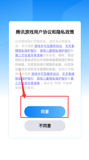 1、首次启动需阅读并勾选用户协议,确认后自动跳转至游戏主界面。