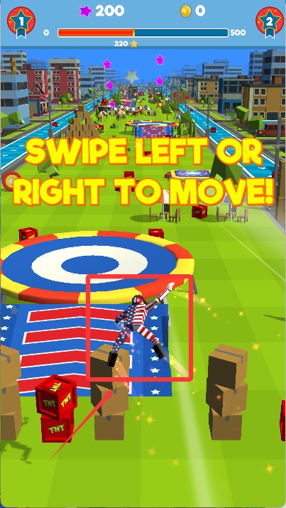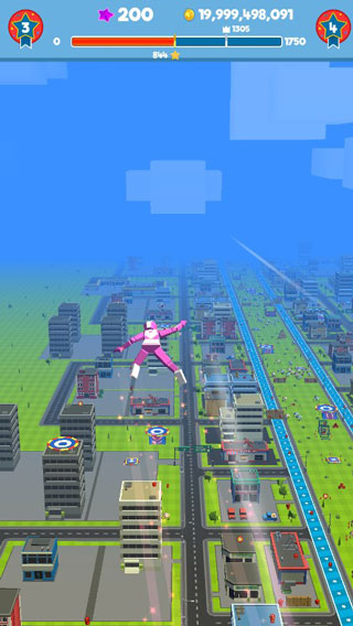 2、飞行途中设有诸多道具,例如弹跳板、加速圈与钻石奖励,精准命中后能大幅度提升飞行距离,增加通关趣味。