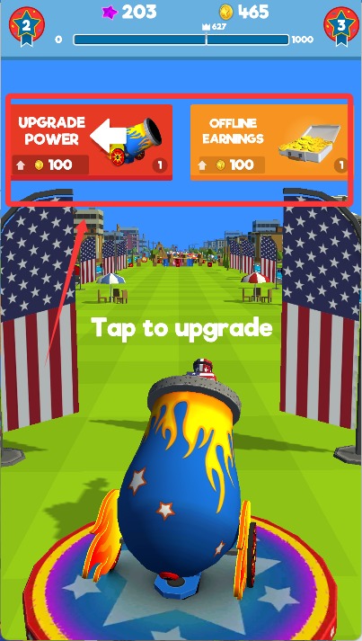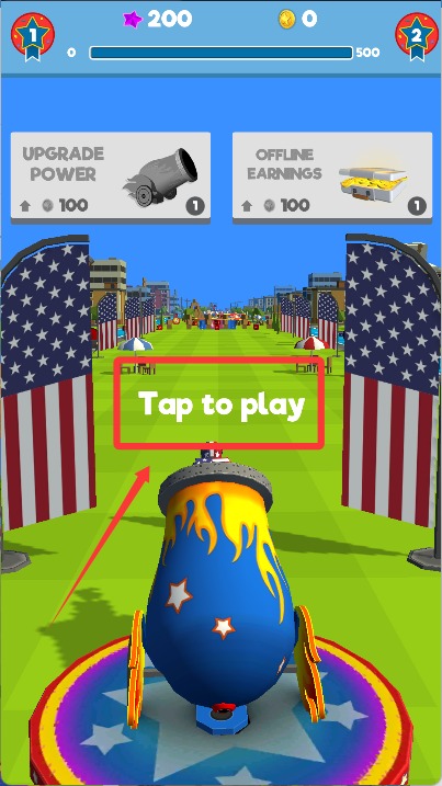 1、每轮挑战开始前,需对大炮的角度与力度进行调节,确认后发射飞人冲向天空,挑战最远飞行距离。