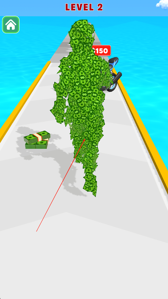 1、随机事件挑战:每关有25%概率触发“钞票风暴”,大量美刀从空中飘落但伴随强风干扰,或出现“税务稽查”障碍,需快速躲避否则扣除50%美刀。