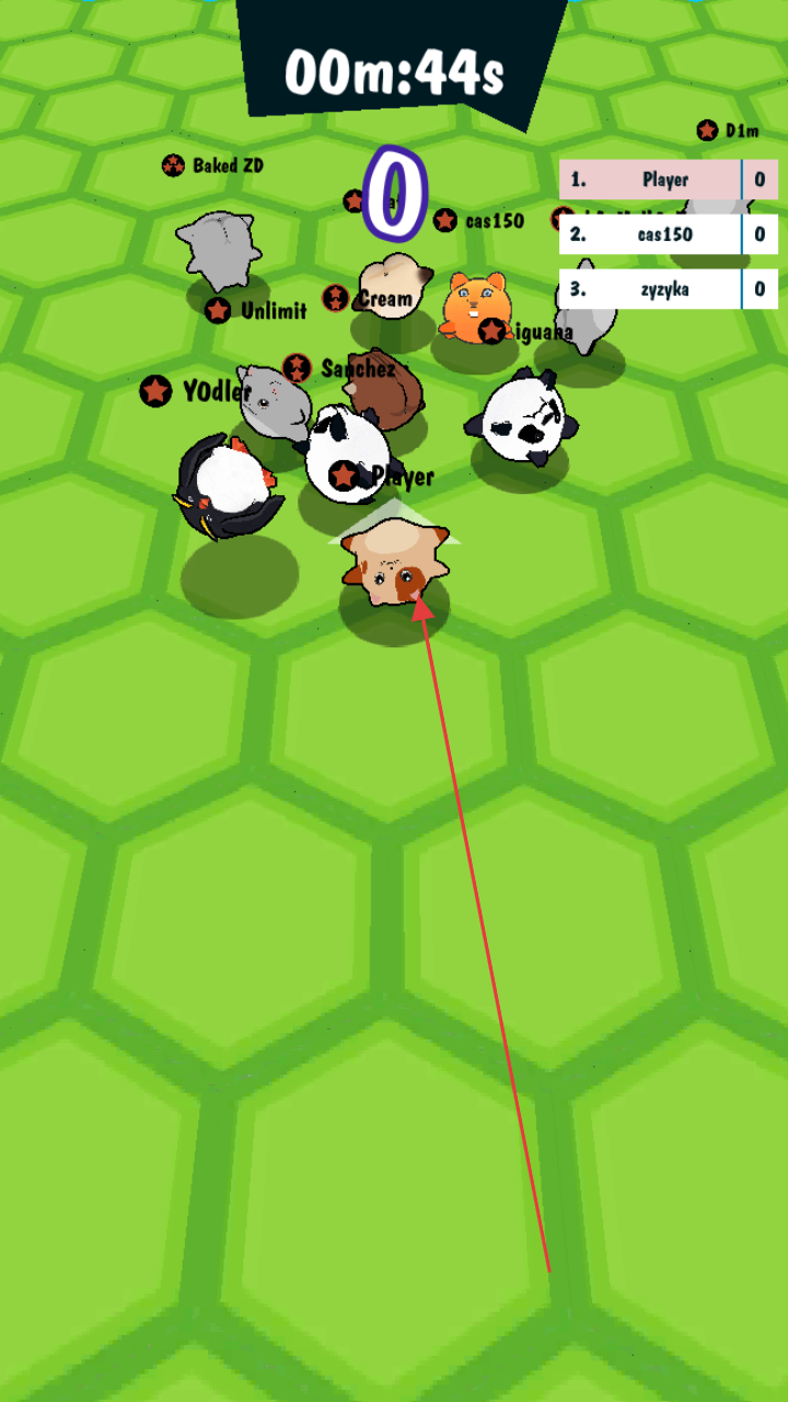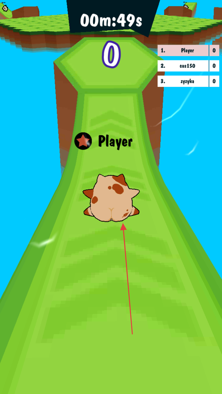 2、操控胖猫角色,在绿色跑道滑行前进,留意上方倒计时,顺利抵达竞技区域。
