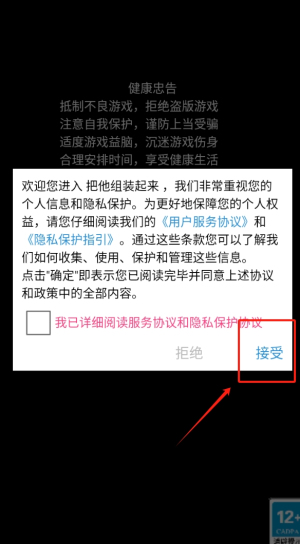 1、首次启动需确认用户协议条款,点击同意按钮进入游戏主界面。