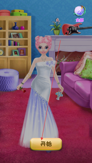 1、点击“开始”进入游戏,可先为公主选择服饰(如礼服、配饰),搭配造型。