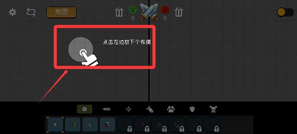 1、进入游戏后首先点击左边屏幕放下一个布偶。
