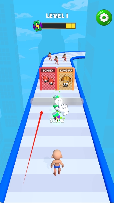 1、接触基础跑酷操作与机制,学习如何控制角色加速、跳跃、闪避障碍物,在简单教学关卡熟悉流程。