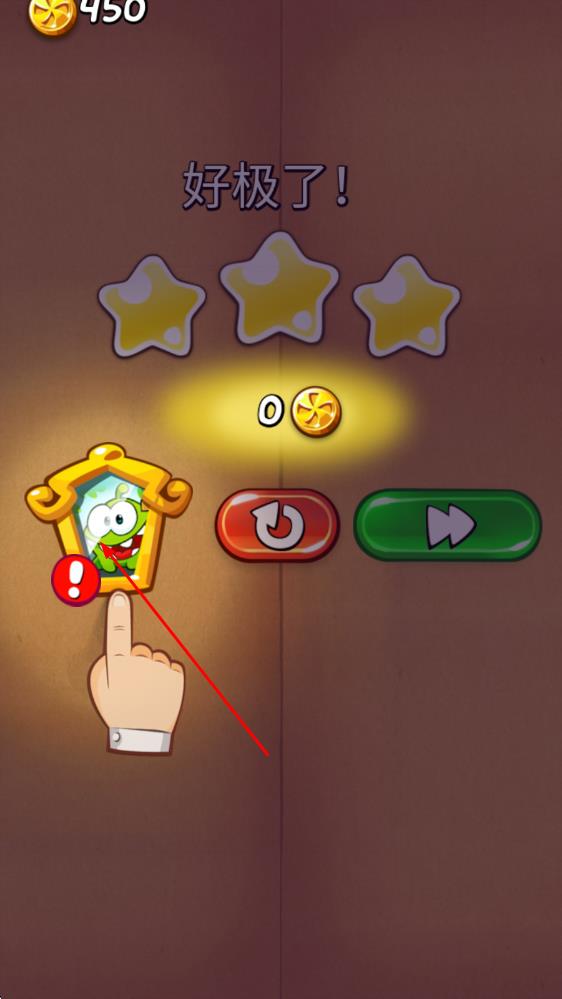 3、成功让糖果落入小恐龙口中,完成当前关卡挑战,解锁新场景与皇家套装,体验闯关成功的喜悦与收集乐趣。