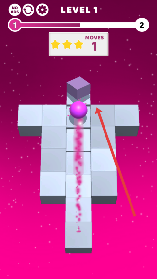 1、关卡1中,按箭头方向滚动紫色球,通过1步移动,让球到达目标位置,完成“LEVEL1”挑战。