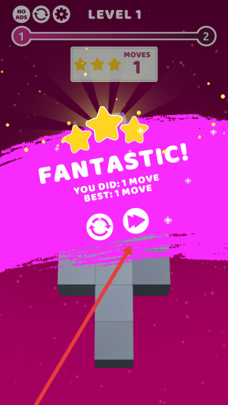 2、通关后,点击“FANTASTIC!”界面的前进按钮,结算1步最佳成绩,进入“LEVEL2”新关卡。