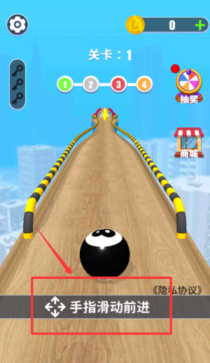 2、手指滑动屏幕,控制黑白球沿赛道前进。