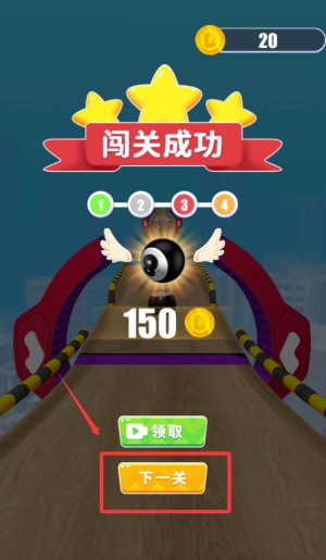 3、点击绿色领取按钮,获取20金币奖励并进入下一关。
