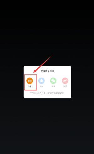 1、点击小米图标,使用小米账号登录游戏。