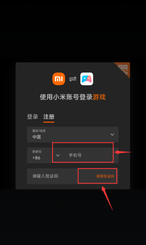 2、输入手机号码,点击获取验证码按钮。