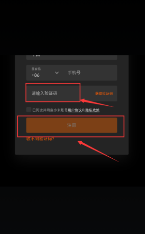 3、填写验证码,点击橙色注册按钮完成。