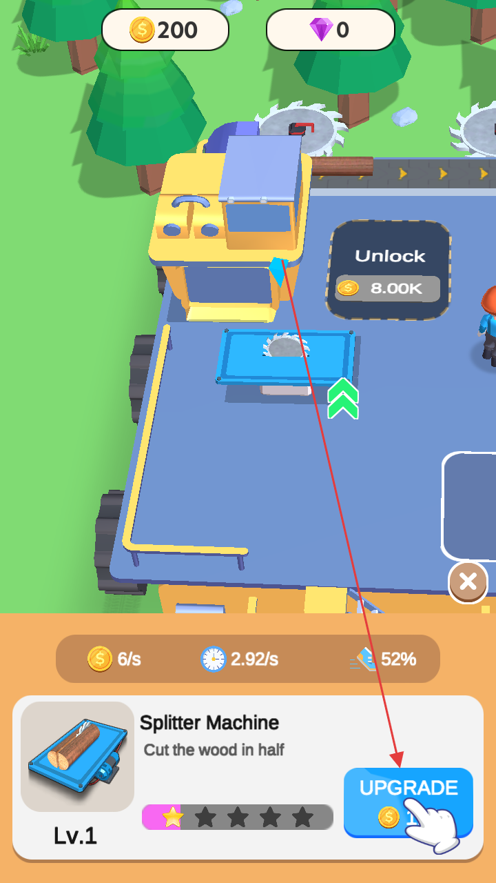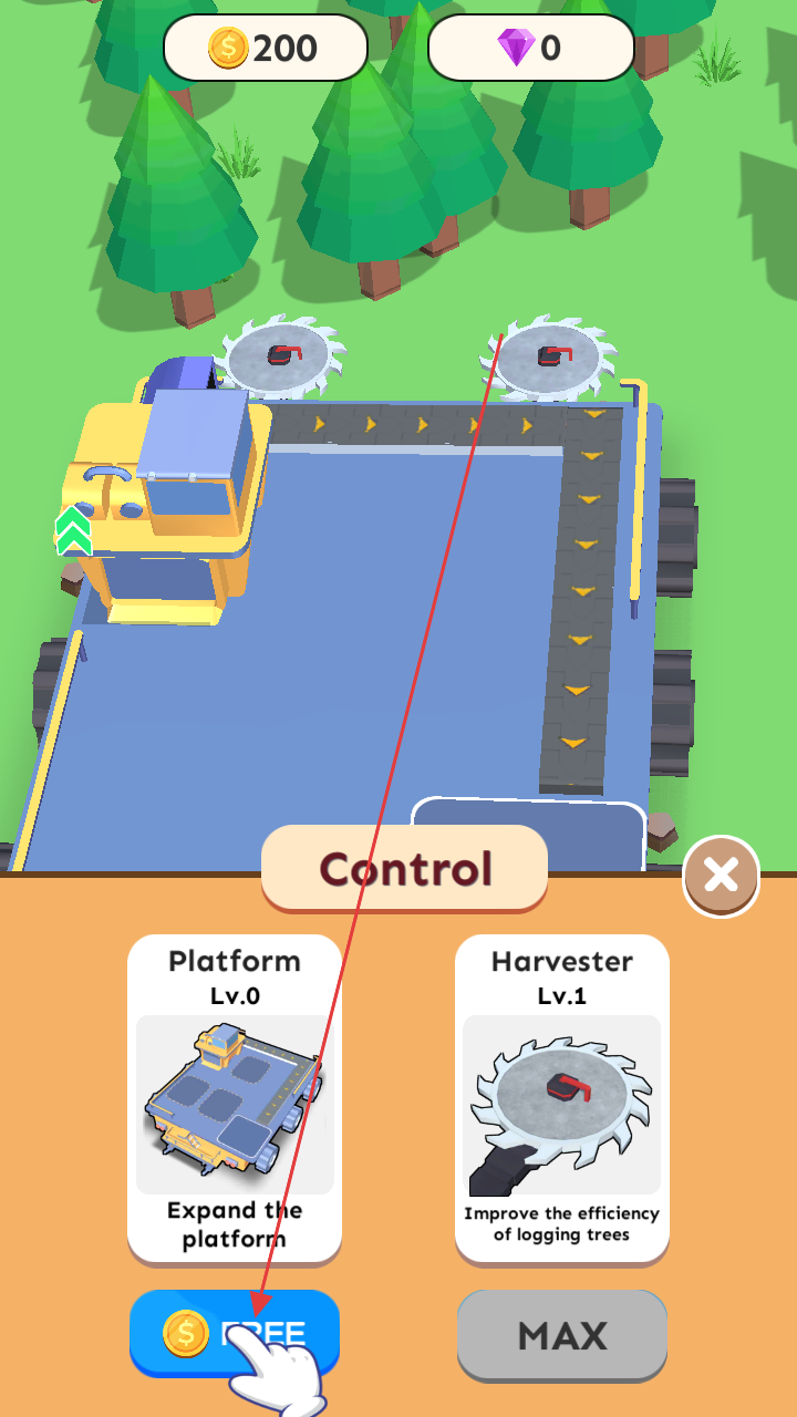 3、借设备升级加快采集、加工,获取更多金币,不断拓展经营,壮大木材产业规模。