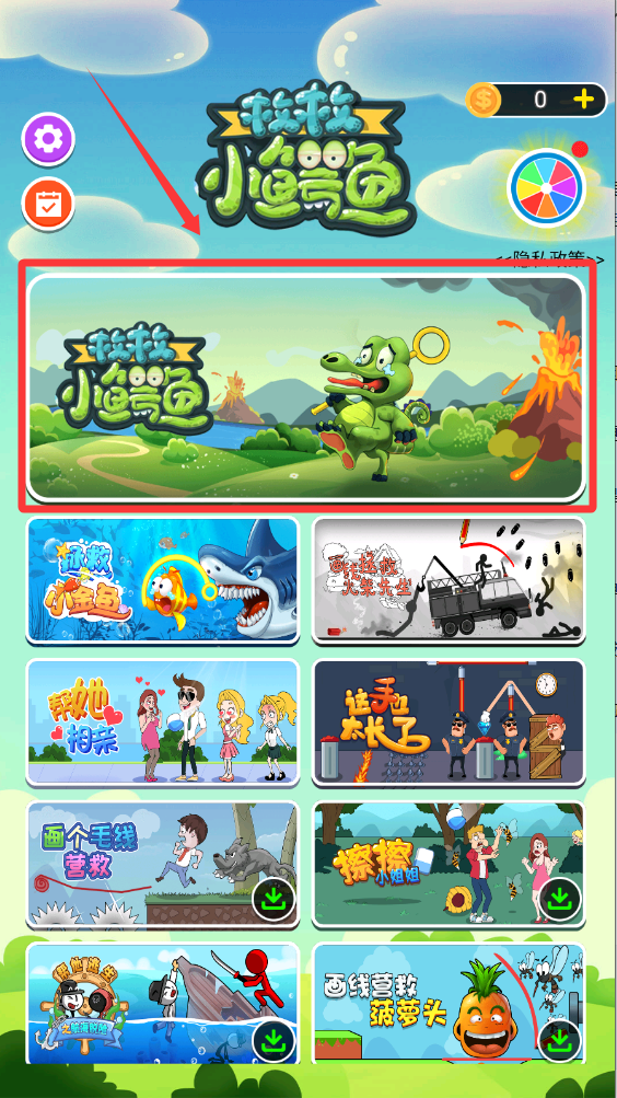 1、选择救救小鳄鱼关卡进入。