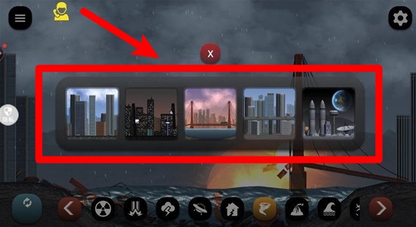 2.点击场景选择区可切换不同地图场景,包含白天城市、夜景都市、大桥海岸与太空基地等,带来多样化破坏体验。