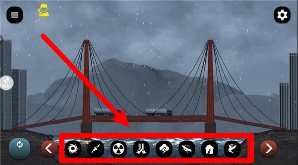 3.画面下方为破坏道具选择栏,包含龙卷风、核弹、电锯等攻击类型,点击图标即可立即发动强力破坏行为。