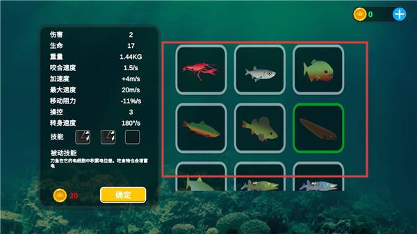 3、成功通关后获得金币奖励,可用于解锁更多鱼类或者提升鲨鱼速度、咬合力等属性,为成为海域霸主做好准备。
