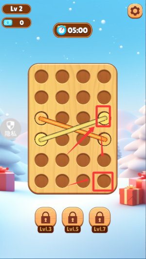 1、开始关卡后先观察绳索的整体布局,找出颜色相同且连接明显的绳索源头,优先解开较为独立的部分,逐步拆解复杂结构。