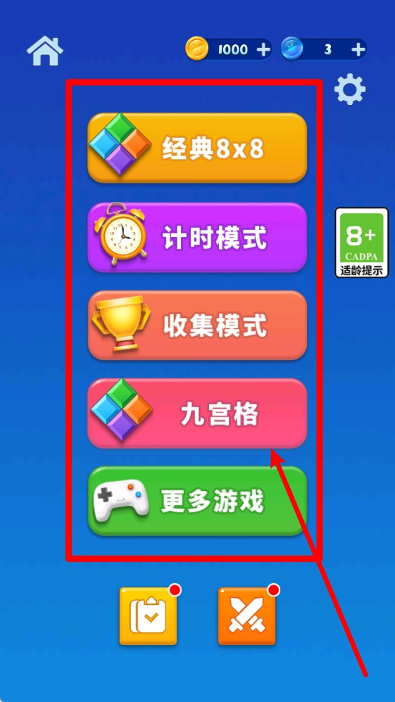 1.多模式选择入口:主界面提供经典模式、计时模式、收集模式与九宫格玩法,每种模式对应不同规则与挑战,内容丰富多样。