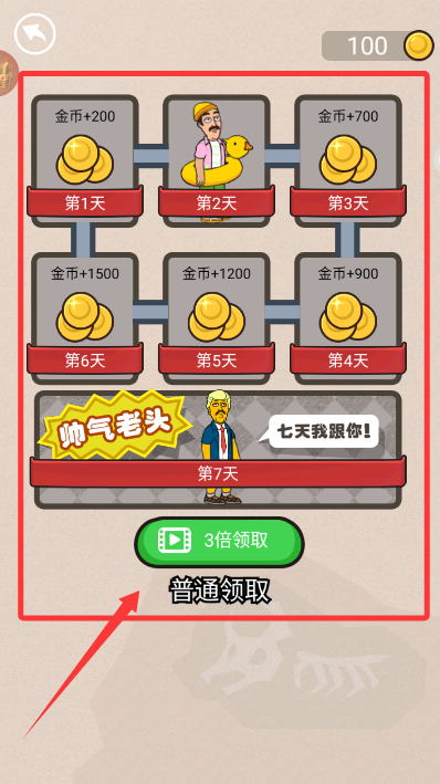 1、启动游戏,每日登录领取金币,可以为后续关卡挑战积累资源。