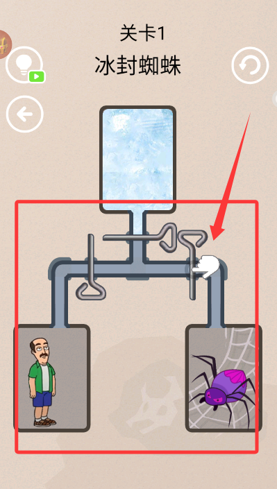 3、仔细观察场景中的机关布局,寻找最佳冰冻时机消灭所有蜘蛛。