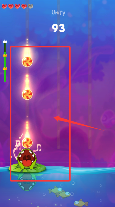 2、操控荷叶上的小青蛙左右移动,精准接住下落的糖果可获取双倍分数。