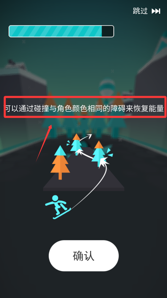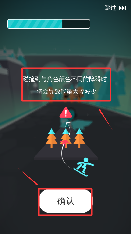 1、根据提示撞到与角色颜色不一样的时候能量会减小,再按下面的确定按钮。