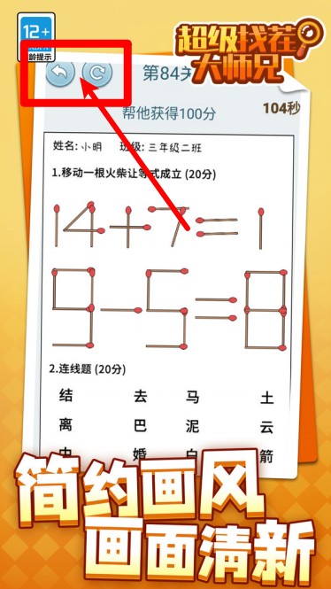 1.点击左上角的按钮可快速撤销上一步操作,帮助玩家灵活调整答案不被卡关。