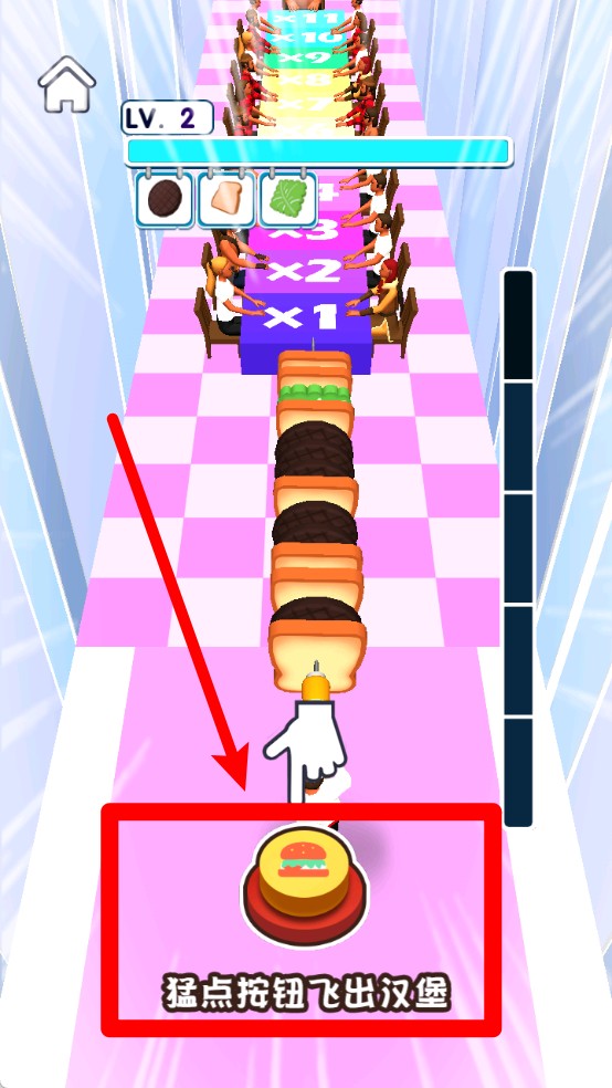 2.游戏中有各种按钮,点击后可触发加速或使用特殊道具。例如,点击汉堡按钮可以激活特殊技能,帮助大厨更快速地完成任务。