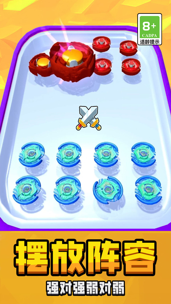 2.策略布阵出击:陀螺可布置在不同区域,依照敌方强度与类型进行排序组合,形成先发压制或后发制人的战术变化。