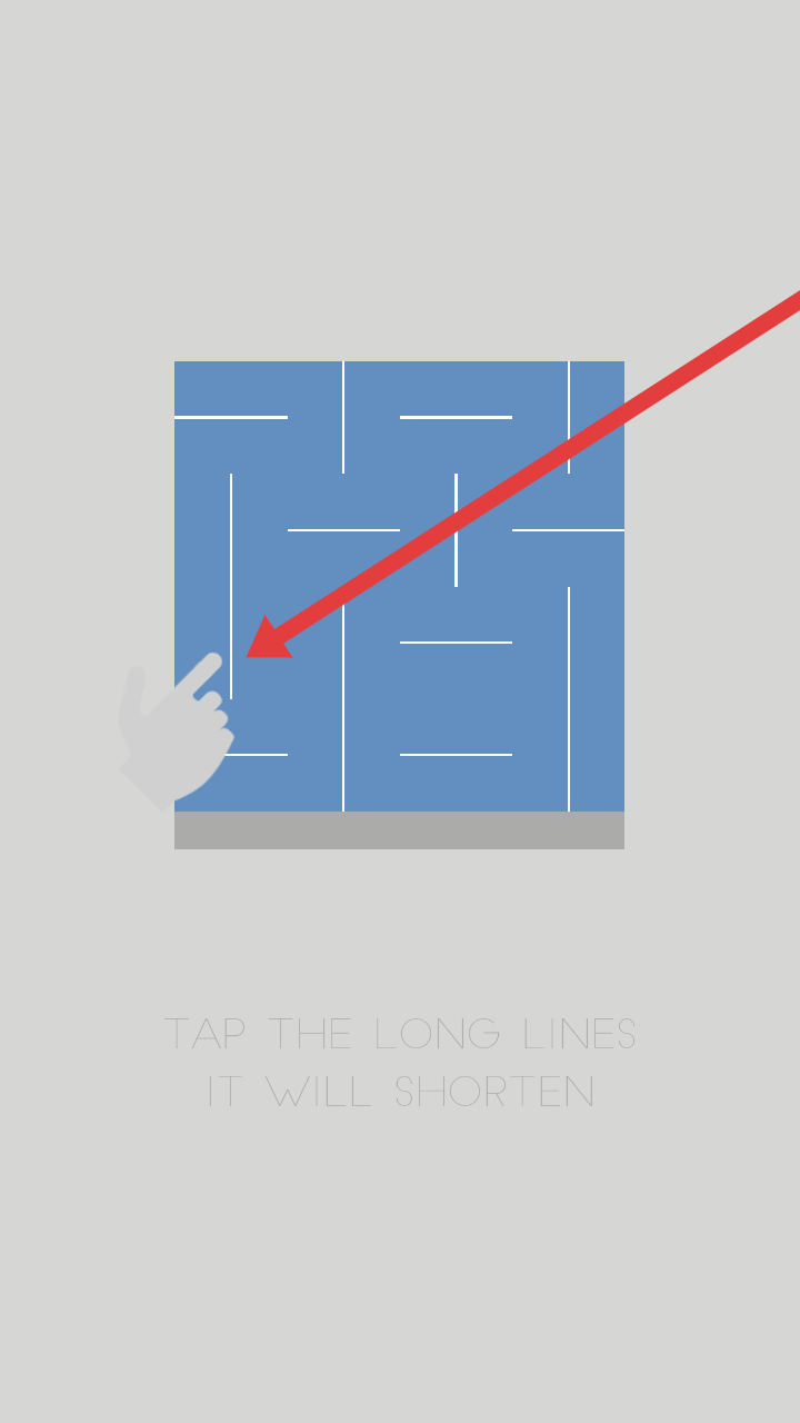 1、进入直线消除2的游戏,遵循系统新手教程的提示,点击蓝色区域内的白色长线,使其缩短,开启玩法体验。
